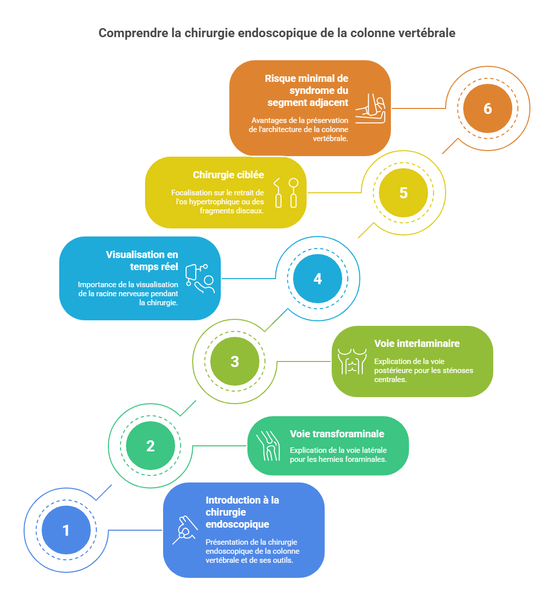 C'est une technique mini-invasive qui utilise une caméra et des instruments spécialisés insérés à travers une petite incision pour traiter des pathologies rachidiennes.