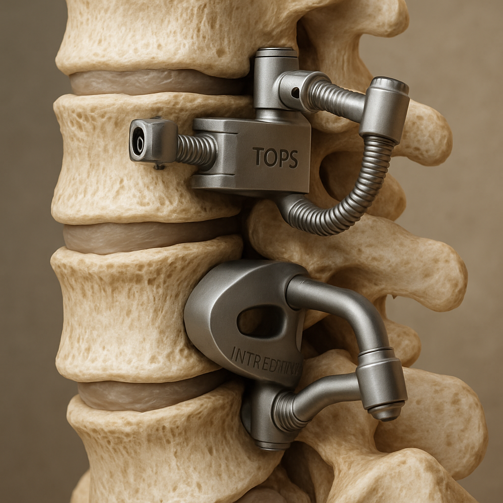 TOPS : Implant dynamique offrant une alternative à l'arthrodèse classique, préservant la possibilité de mouvement naturel.